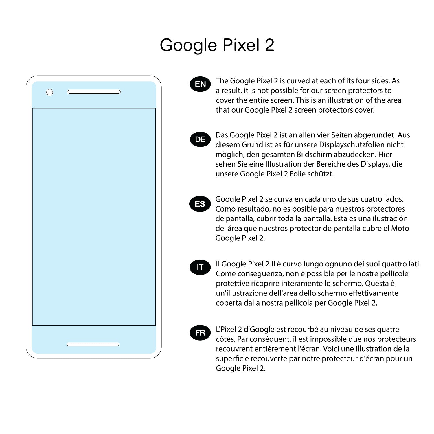 The screen of this device is curved at each of its four sides, therefore we have designed this protector to fully cover the flat portion of the screen.