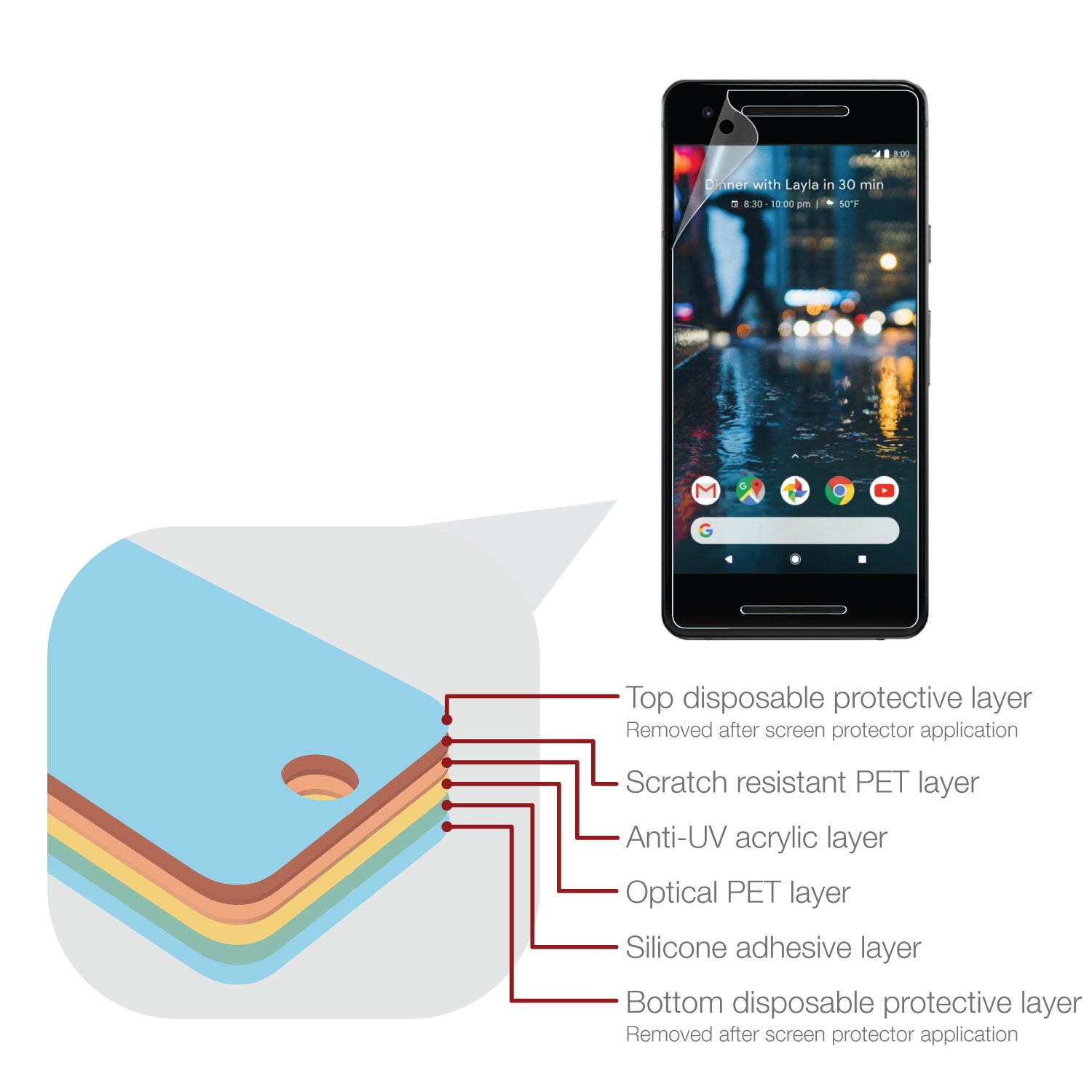 - Does not reduce clarity or touch sensitivity.